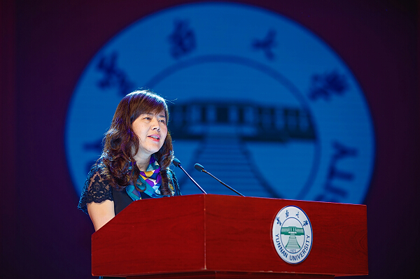 软件学院2017届毕业生王博洋家长杨丹书女士也在典礼上代表全体毕业生家长发言,向云南大学多年来对子女的悉心栽培表示感谢。
