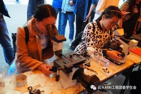 此次活动历时三天,时间虽短,但内容相当丰富。我们本着“科普知识,受众全校”的理念,先后设计开展了“扎染”,“软陶制作”,“ 金相观察”,“暗室显影”以及“保护鸡蛋”等有趣且洋溢着科学气息的活动。