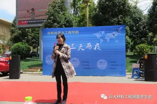 4月5日,第一届材料科学与工程学院品牌活动——“我们的三天两夜”拉开帷幕。校团委、材料科学与工程学院党政负责人和学院师生等参加了开幕式。开幕式上校团委书记于春滨对材料科学与工程学院第一届品牌活动给予了肯定和支持,柳清菊院长对活动的开展提出了要求和希望。