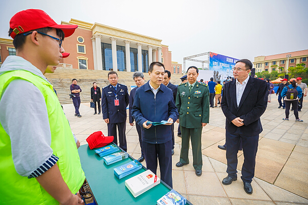 张太原宣布“六进”宣传暨“进校园”主题活动正式启动。任军号在启动仪式上作动员讲话。启动仪式上,参会领导还向师生代表赠送了反恐怖相关读本。