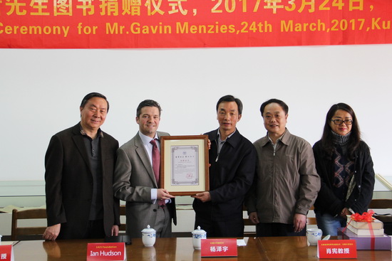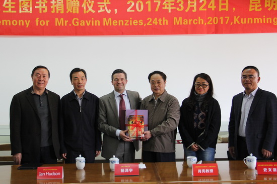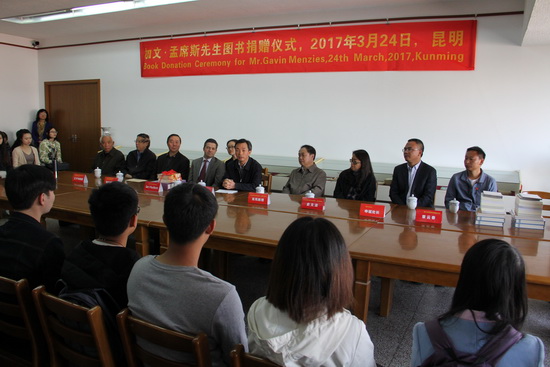 3月24日,英国郑和研究学者加文·孟席斯先生图书捐赠仪式在东陆校区图书馆举行。云南大学党委常委、副校长杨泽宇,孟席斯先生代表彦·赫德森先生,郑和研究会副会长肖宪教授及从事郑和研究的专家、学者出席了捐赠仪式。