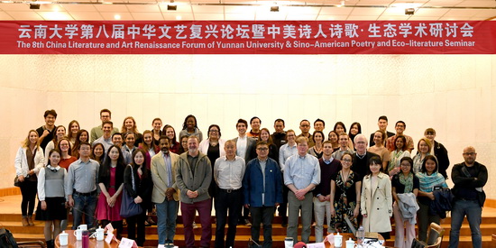 文学院院长李生森教授最后做总结发言,他说每一棵植物需要被重新发现,希望那种自在的诗意显现出来,而自己也是用这种心灵进行诗歌创作与批评。在中美诗人共同参与下,云南大学第八届中华文艺复兴论坛暨中美诗人诗歌•生态学术研讨会圆满结束。