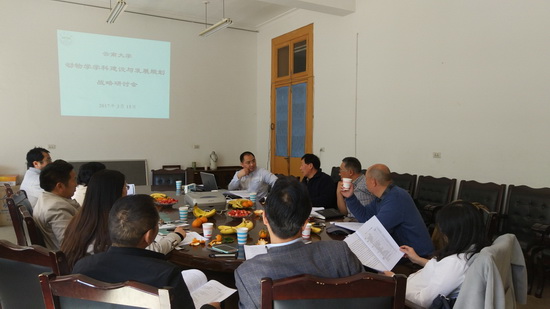 生物学一级学科是云南大学的传统优势学科,是列入我校双一流建设方案的八个高峰学科之一。该一级学科下的动物和植物学于20173月首次进入ESI全球前1%,与微生物学、化学学科一起成为云南大学进入ESI全球前1%的学科。为贯彻落实云南大学双一流建设方案和十三五规划,生命科学学院于315日下午在东陆校区生物馆东楼一楼会议室召开了动物学科建设与发展规划战略研讨会。会议由生命科学学院副院长陈善元教授主持,学院党委书记廖峻涛、肖蘅教授、陈明勇教授,农学院叶辉教授,省部共建云南生物资源保护与利用重点实验室于黎研究员,以及动物学科副高以上的优秀科研骨干教师出席了本次战略研讨会。廖峻涛书记发言指出,学校高度重视学科建设与发展规划的制定工作,强调学科超越学院界限,我们应该密切配合,争取早日完成动物学科建设与发展规划的制定工作。