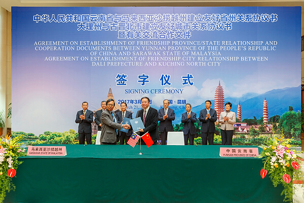 在云南省省长阮成发、副省长陈舜、省政府秘书长何金平,中国驻马来西亚古晋总领事付吉军,马来西亚沙捞越州首席部长拿督阿玛·阿邦·佐哈、马来西亚驻昆明总领事萧进的见证下,云南大学党委书记杨林与马来西亚沙捞越大学董事会主席、拿督哈他·索力共同签署了《马来西亚沙捞越大学与中国云南大学合作谅解备忘录》。