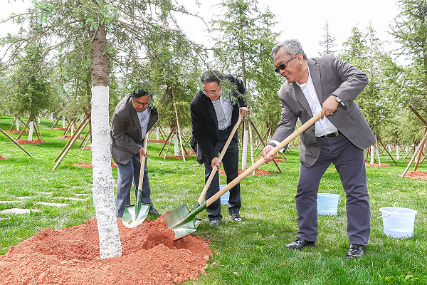会见结束后,在杨林及相关部门负责人的陪同下,哈他·索力、罕默德·卡迪姆·苏埃迪一行还参观了云南大学“一带一路”研究院、泽湖、院士林、图书馆,详细了解学校建设发展的情况,并在中外大学校长林种下了象征双方友谊的雪松树。