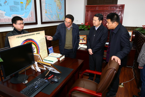 调研会召开之前,在云南大学党委书记杨林的陪同下,武世兴、江河一行参观了学校“一带一路”战略研究院。