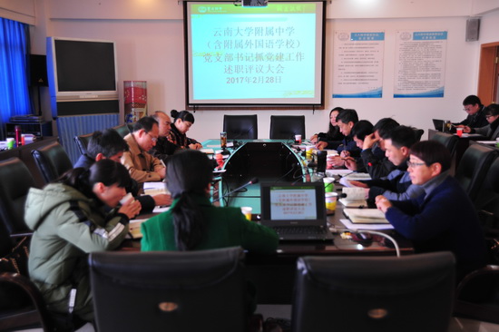 228日上午,云大附中(含附属外国语学校)2016年度党支部书记抓党建工作述职考评会议在一二一校区举行。会议由附中党委书记王宇伟主持,附中党委委员、党员领导干部、各支部书记、支委、教师代表及部分职能部门负责人参会。