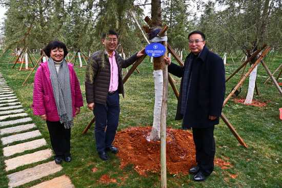 在中外校长林,黄泰岩还亲手种下了象征两校友谊的雪松树。
