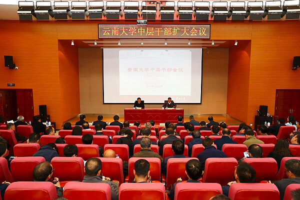 校党委书记杨林主持会议并讲话。他充分肯定了云南大学建设发展取得的成绩,并提出三点要求:一要准确把握新形势新任务新挑战,增强工作的主动性针对性有效性。要深入学习和思考教育部部长陈宝生在2017年全国教育工作会议上提出的我国教育面临的“五化”:服务经济社会全面化、对象群体多元化、社会需求多样化、全面学习终身化、发展环境国际化,冷静分析、准确把握当前面临的新形势新要求,切实增强发展的荣誉感使命感责任感,增强工作的主动性针对性有效性,按照云南大学第十二次党代会提出的目标,改革创新、狠抓落实,努力把学校“双一流”建设的宏伟蓝图变为现实。