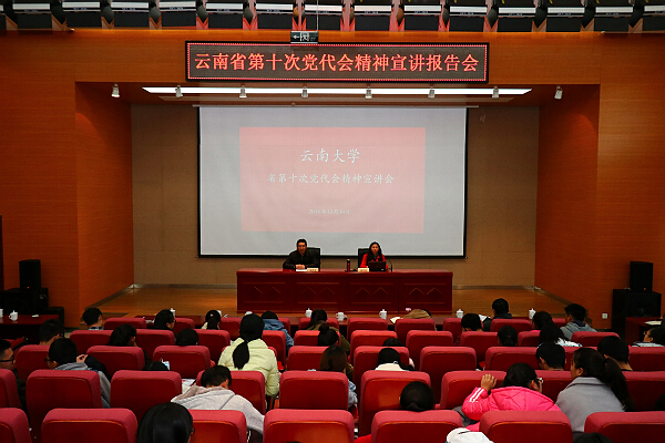 12月30日下午,云南省第十次党代会精神宣讲报告会在呈贡校区举行。省第十次党代会代表、云南大学文学院副院长董秀团教授应邀作宣讲报告。相关部门负责人及师生代表聆听了报告会。