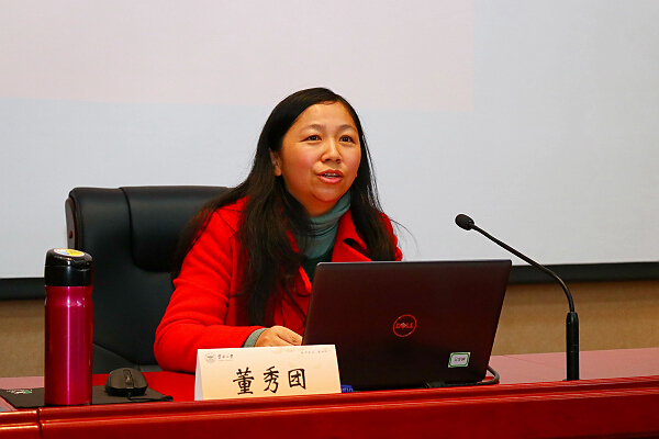 报告会上,董秀团介绍了云南省第十次党代会的基本情况,并从大会主题、云南省五年来取得的8个方面的成绩、今后五年的主要奋斗目标,以及“奋力开创跨越发展新局面”、“大力推进供给侧结构性改革,转变经济发展方式”、“坚决打赢脱贫攻坚战,决不让一个兄弟民族掉队”、“加强民主法治建设,发展社会主义政治文明”、“建设民族文化强省,丰富群众精神文化生活”、“加快社会事业发展,促进民族团结进步”、“坚持绿色发展,不断推进生态文明建设”、“坚定不移推进全面从严治党,为全面建成小康社会提供坚强政治保证”等方面,传达了省委书记陈豪代表中共云南省第九届委员会向大会作的题为《紧密团结在以习近平同志为核心的党中央周围勇于担当 奋发有为 为云南全面建成小康社会而努力奋斗》的工作报告。她重点介绍了陈豪书记参加高等院校代表团讨论的情况,并结合学校实际,从认真贯彻落实中央精神和省委报告、高等教育的责任和使命、围绕“双一流”建设大局推进云南大学跨越式发展等方面谈了学习省第十次党代会精神的感受与体会。