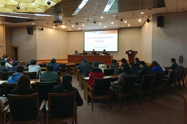为进一步提高国家级项目的申报水平,保证我校2017年国家级项目数量稳中有升、质量逐步提高,12月21日上午,我校在东陆校区科学馆二楼报告厅召开2017年度国家级项目申报动员会。杨泽宇副校长出席会议并讲话,社科处李晨阳处长主持会议。文科各学院/研究院院长、分管科研工作副院长、科研秘书、教师代表以及社科处全体人员等100余人参加会议。