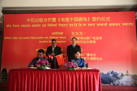初冬的加德满都,中尼媒体界、教育界人士欢聚一堂,倾心相交,共同见证中尼文化交流的又一重要成果。12月19日,在中共中央政治局委员、中央书记处书记、中宣部部长刘奇葆,尼泊尔副总理兼财政部长马哈拉共同见证下,云南大学“面向东南亚、南亚、西亚文化出版基地”与尼泊尔“尼中媒体论坛”签署了关于促进中尼出版文化教育合作的协议。云南大学出版社副总编辑伍奇和“尼中媒体论坛”主席科绍·施瑞斯塔分别代表双方签署协议。