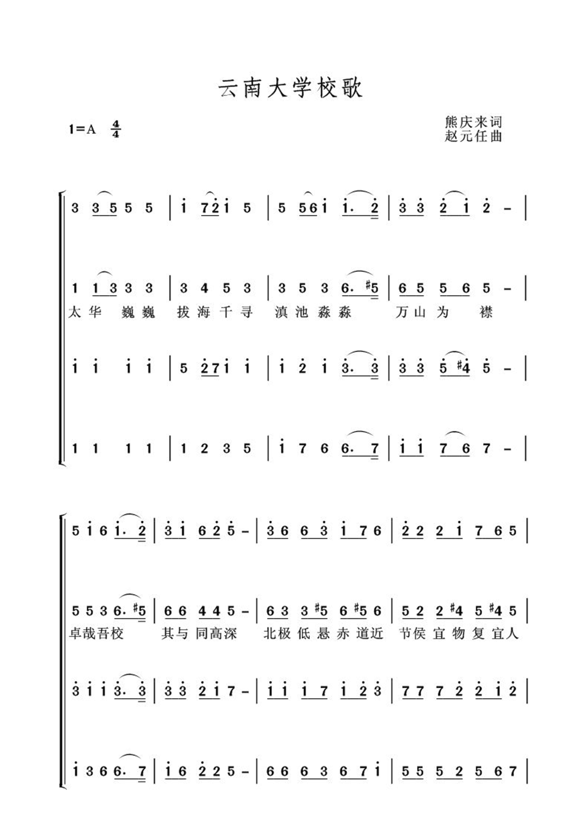 《云南大学校歌》创作于1938年,由时任云南大学校长、数学家、教育家熊庆来先生作词,由语言学家、作曲家赵元任先生作曲。一代又一代云大人传唱着朝气蓬勃的校歌,读书、探研,求新、求真,为国家富强和民族复兴贡献力量。如今,站在新的历史起点上,为进一步激发广大师生的凝聚力,秉承“会泽百家 至公天下”的云大精神,全力推进一流大学建设,特开展“校歌MV”征集活动。具体安排如下: