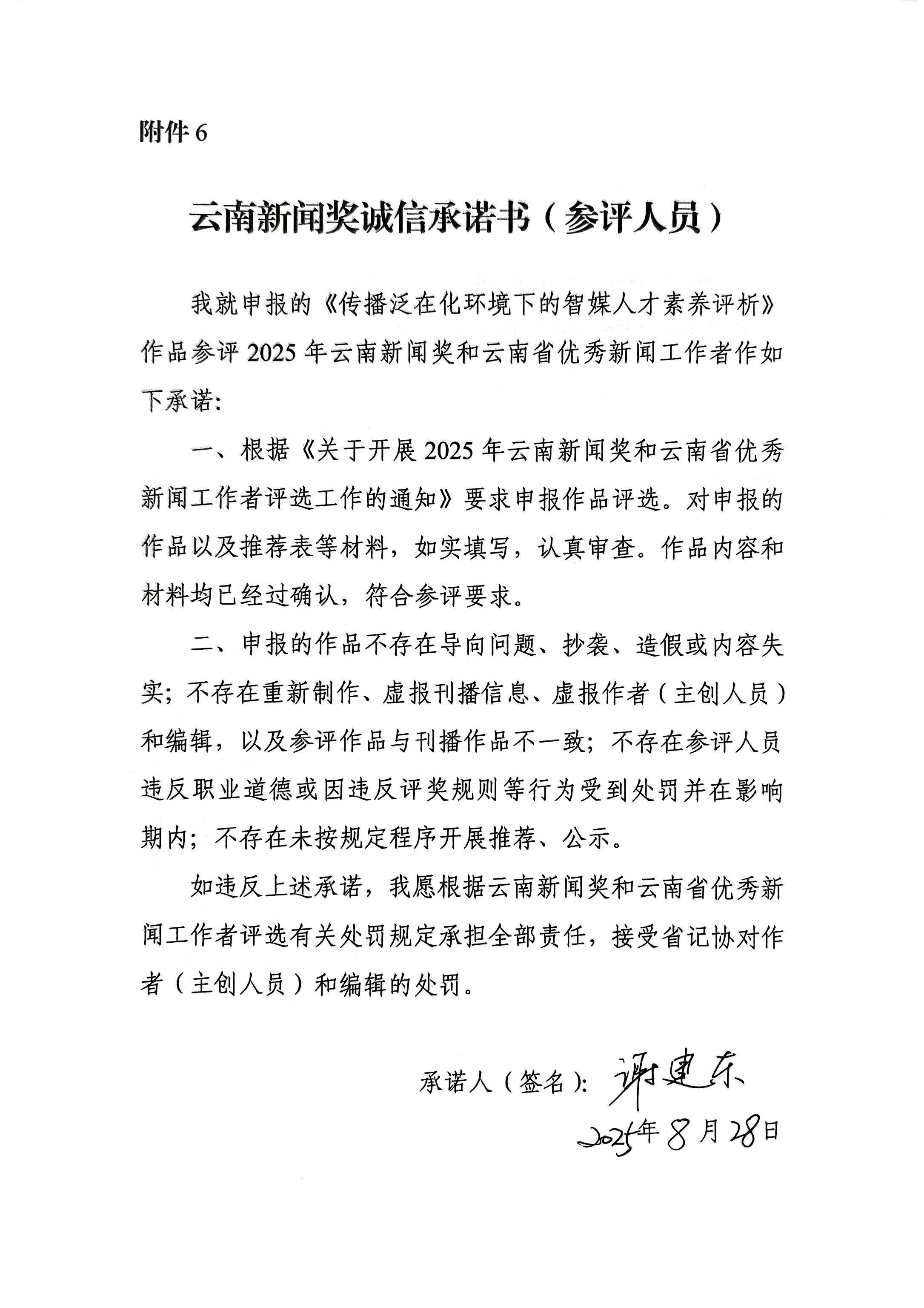 根据省委宣传部等部门关于开展2025年云南新闻奖和云南省优秀新闻工作者评选有关工作的通知要求,经个人申报、专家评审,我校拟推荐‌新闻学院谢建东老师‌的《传播泛在化环境下的智媒人才素养评析》(发表于《新传播(期刊)2024年第1期)参加本新闻奖评选。该作品已通过省级初审,现予以公示具体详见附件